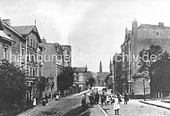 84_0141 Blick in die Strasse Alte Schleuse, die parallel zur Schleusenanlage des Veringkanals verläuft. Kinder stehen auf der Strasse, die mit Gründerzeit-Wohnhäusern bebaut ist. Im Hintergrund die Brücke über den Veringkanal zur Veringstrasse und die Türme der Kirche St. Bonifatius von >>> |
