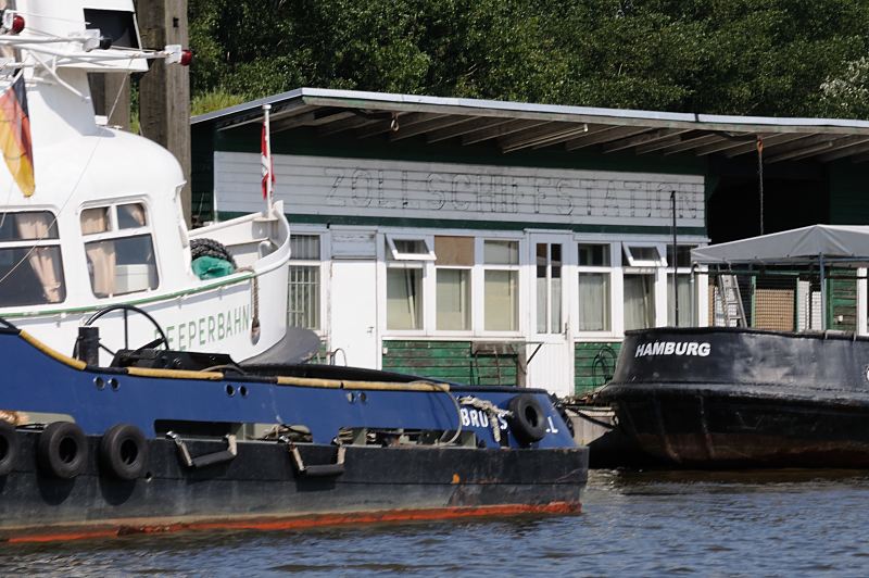 Schiffsponton vor Entenwerder - Schriftzug Zollschiffstation - Arbeitsboote.