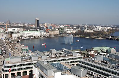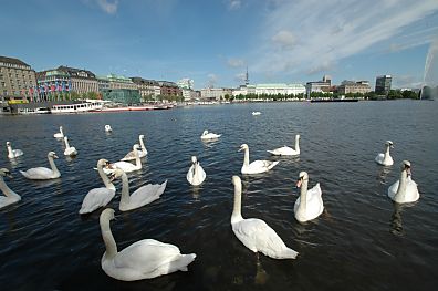 - Blick über Binnenalster und Aussenalster; zwei