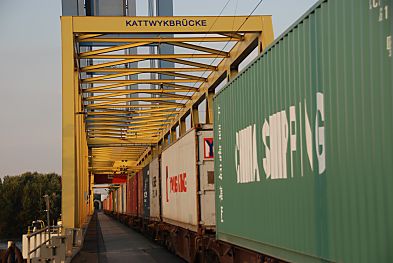 - die Güterzüge mit ihrer Containerladung können ein Länge bis zu