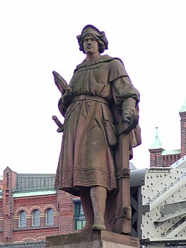 Brückenskulptur Vasco da Gama, 1469-1524; den Seeweg um Afrika nach