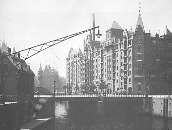 1] St. Annenbrücke; re. das Speicherstadt' rathaus ' |