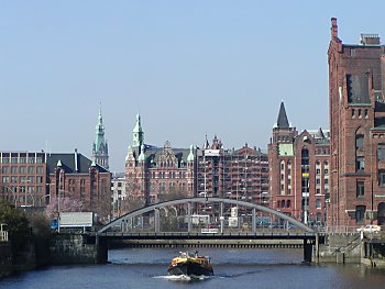 | 1] Blickrichtung vom Amt für Strom- und Hafenbau zum unter Denkmalschutz stehenden Kaispeicher B. |