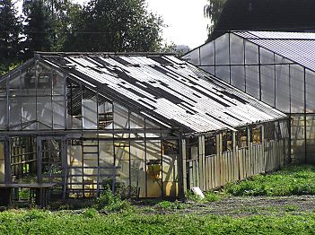 Vierlande/Glas-Gewächshäuser, die Dachluken sind zur Belüftung geöffnet |