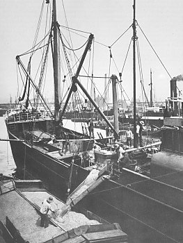 Schiffsentladung im Hansahafen ca. 1920 |