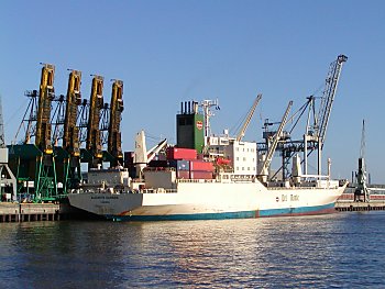 Frachtschiff am O'swaldkai / Hansahafen |