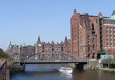 rechts das Zollmuseum und das Zollgebäude in der Speicherstadt.
