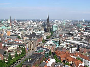 dann die Türm der Petri- und Jacobikirche, in der Bildmitte die Nikolaikirche