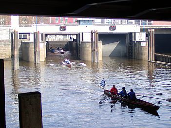 die Schaartorschleuse Richtung Speicherstadt / Kehrwieder.