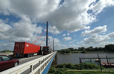 mit Blitzableiter; im Vordergrund Holzmasten mit Stromleitungen, im