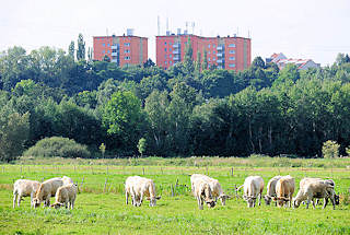 | 8175 Kühe auf der Weide in Hamburg Gut Moor - im Hintergrund Hochhäuser von Hamburg Rönneburg. >>> | 8178 Reetgedecktes Fachwerkhaus im Grünen - Bilder aus dem Hamburger Stadtteil GUT MOOR. >>> | 8189 Stuckdekor an der Fassade eines Hauses - vergoldete Ährengarbe und Sichel, Fotos aus Hamburg GUT MOOR. >>> | 8203 Gedenkstein zur Erinnerung an die Gefallenen der beiden Weltkriege in Hamburg GUT MOOR. >>> | ||||||