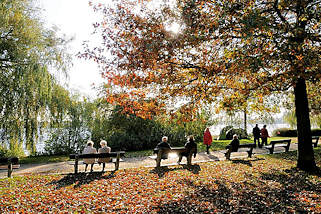 | 0362 Segelboote mit Spinnaker - Segelregatta auf der Aussenalster - vorm Alsterufer von Hamburg. >>> | 0717 Villa im Stil des Klassizismus im Alstervorland - Buchenblätter im Herbst. >>> | 2010 Die Herbstsonne scheint durch das Laub der Bäume am Alsterufer von Hamburg Harvestehude - Spaziergänger. >>> | P9300048 Blick über die Grindelhochhäuser in Hamburg Harvestehude, Bezirk Eimsbüttel. >>> | ||||||