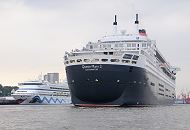 2432 Die Hecks der Kreuzfahrtschiffe DEUTSCHLAND und QUEEN MARY 2 im Hamburger Hafen. >>> |