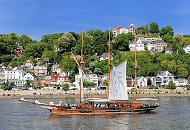 3016 Historisches Segelschiff auf der Elbe vor Hamburg Blankenese - Elbstrand und Süllberg mit Häusern. Blankenese ist ein im Jahr 1301 erstmals urkundlich erwähntes, ehemaliges Fischerdorf an der Elbe. Der Name Blankenese kennzeichnete früher den >>> |