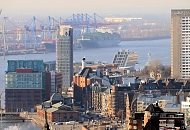 322_2131 Luftaufnahme Grosse Elbstrasse - Architektur. Blick über den Altonaer Fischmarkt auf die Architektur in der Grossen Elbstrasse. Auf dem schmalen Streifen des Altonaer Hafenrands standen Fischverarbeitungs- betriebe, Dampfmühlen, eine Mälzerei sowie zahlreiche Speicher- und Silobauten. 1845 wurde ein Eisenbahnkai >>> |