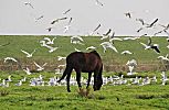 066_4821 Im Mündungsgebiet der Schwinge in die Elbe ist das Ankern für Schiffe verboten - ein großes rotumrandetes Schild mit einem Anker, der rot durch- strichen ist, weist auf das Ankerverbot hin. Eine Herde Schafe am Ufer der Schwinge sucht im Schatten einer Weide Schutz vor der Sonne. . >>> |